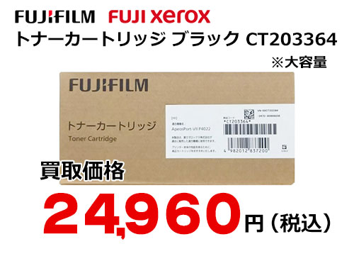 ただいま高価買取中! ※表示の価格は、2024年10月23日 現在のものです。 ※買取価格は、商品の状態や市場動向によって変わる場合があります。 最新の買取価格は、下記「無料見積もり依頼」よりお問い合わせ下さい。 富士フイルム(旧ゼロックス FUJI XEROX)純正 大容量トナーカートリッジ CT203364 カラー ブラック(モノクロ) 印刷枚数 18000 枚 対応機種 ApeosPort-VII P4022/P4022JM