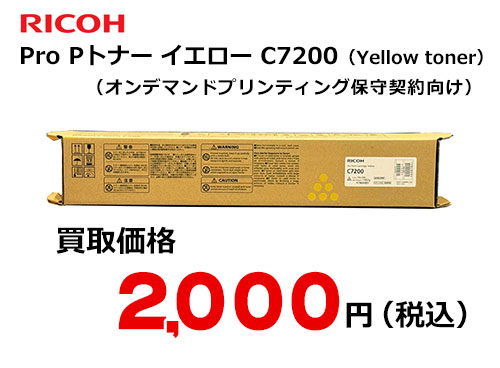 ただいま高価買取中! ※表示の価格は、2025年11月8日 現在のものです。 ※買取価格は、商品の状態や市場動向によって変わる場合があります。 ※パッケージは変更になっている場合がございます。 最新の買取価格は、下記「無料見積もり依頼」よりお問い合わせ下さい。 リコー(RICOH)プロダクション向け(商用)製品 RICOH Proシリーズ RICOH Pro Pトナー イエロー C7200 ※保守契約供給品 カラー イエロー 印刷枚数 約60000枚 対応機種 RICOH Pro C7210S/C7200S