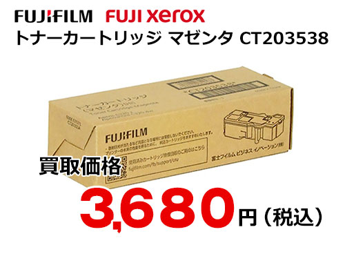 ただいま高価買取中! ※表示の価格は、2025年12月16日 現在のものです。 ※買取価格は、商品の状態や市場動向によって変わる場合があります。 ※パッケージは変更になっている場合がございます。 最新の買取価格は、下記「無料見積もり依頼」よりお問い合わせ下さい。 富士フイルム(旧ゼロックス FUJI XEROX)純正 トナーカートリッジ マゼンタ CT203538 カラー マゼンタ 印刷枚数 2000枚 対応機種 ApeosPort-C320dw/C320z