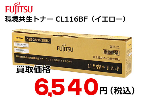 ただいま高価買取中! ※表示の価格は、2025年11月17日 現在のものです。 ※買取価格は、商品の状態や市場動向によって変わる場合があります。 ※パッケージは変更になっている場合がございます。 最新の買取価格は、下記「無料見積もり依頼」よりお問い合わせ下さい。 富士通(FUJITSU) 純正 トナーカートリッジ(環境共生トナー) CL116BF イエロー(商品番号:0890224) カラー イエロー 印刷枚数 10000枚(大容量) 対応機種 FUJITSU Printer XL-C8350