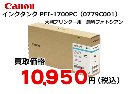 ただいま高価買取中! ※表示の価格は、2023年6月14日 現在のものです。 ※買取価格は、商品の状態や市場動向によって変わる場合があります。 最新の買取価格は、下記「無料見積もり依頼」よりお問い合わせ下さい。 キヤノン(Canon)純正 大判プリンター imagePROGRAF用 顔料インクタンク PFI-1700 PC / 0779C001 カラー 顔料フォトシアン 対応機種 imagePROGRAF PRO-2000/PRO-4000/PRO-4000S/PRO-6000S 備考 容量:700ml