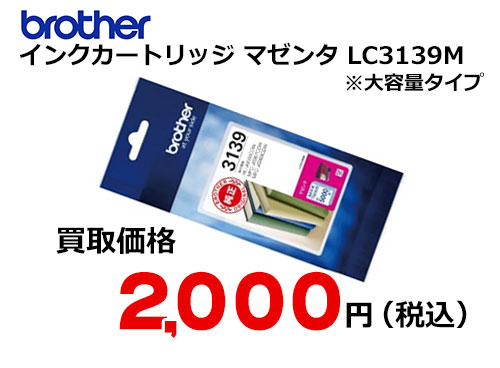 ただいま高価買取中! ※表示の価格は、2025年5月16日 現在のものです。 ※買取価格は、商品の状態や市場動向によって変わる場合があります。 ※パッケージは変更になっている場合がございます。 最新の買取価格は、下記「無料見積もり依頼」よりお問い合わせ下さい。 ブラザー(brother) 純正 インクジェット複合機用 大容量インクカートリッジ(マゼンタ)LC3139M カラー マゼンタ 対応機種 HL-J6000CDW/MFC-J6997CDW/MFC-J6999CDW 備考 印刷枚数:5000枚(大容量タイプ)