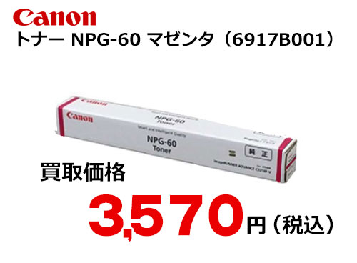 ただいま高価買取中! ※表示の価格は、2025年9月26日 現在のものです。 ※買取価格は、商品の状態や市場動向によって変わる場合があります。 ※パッケージは変更になっている場合がございます。 最新の買取価格は、下記「無料見積もり依頼」よりお問い合わせ下さい。 キヤノン(Canon)純正 トナーカートリッジ NPG-60 Magenta Toner / 6917B001 カラー マゼンタ 対応機種 imageRUNNER ADVANCE C2218F-V/iR-ADV C2218F-V 備考 印刷枚数:3500 枚